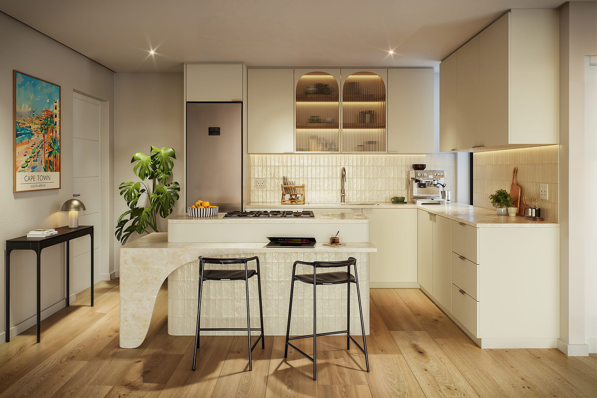 Elora is a boutique collection of 19 apartments - studios, one and two bedrooms- each designed with a calm, considered approach. Clean lines meet gentle curves, open spaces invite light, and natural textures echo the wood, sand, and stone of the surrounding coast.